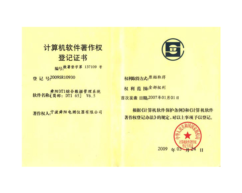 舜陽DT1綜合數(shù)據(jù)管理系統(tǒng)6.5軟件著作權(quán)2020-09-17