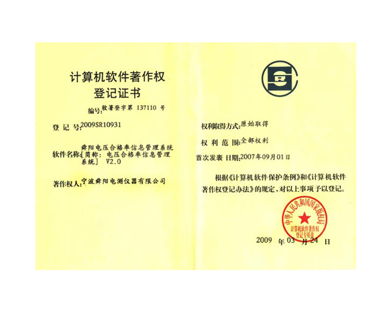 舜陽電壓合格率信息管理系統(tǒng)2.0軟件著作權(quán)證2020-09-17