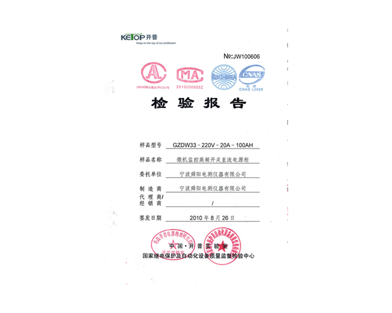 微機監(jiān)控高頻開關(guān)直流電源柜檢驗報告2020-09-17