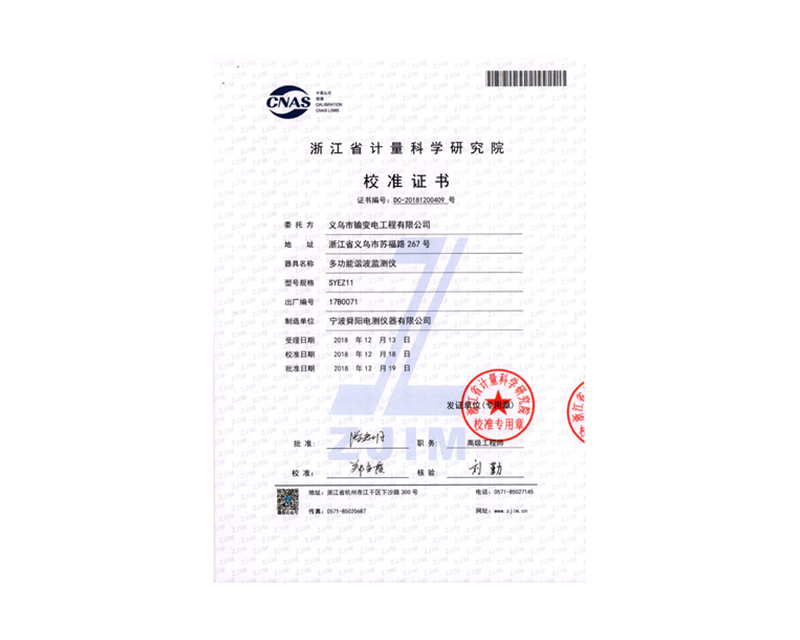 多功能諧波監(jiān)測儀校準報告2020-09-17